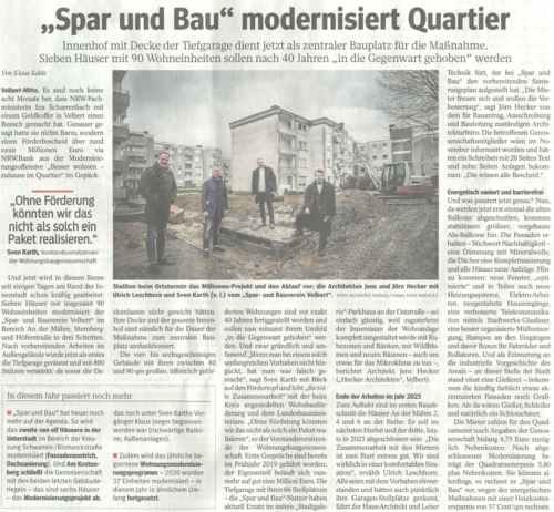 Bericht WAZ vom 29.03.2021 über Modernisierungsprojekt des spar+bau in der Velberter Innenstadt