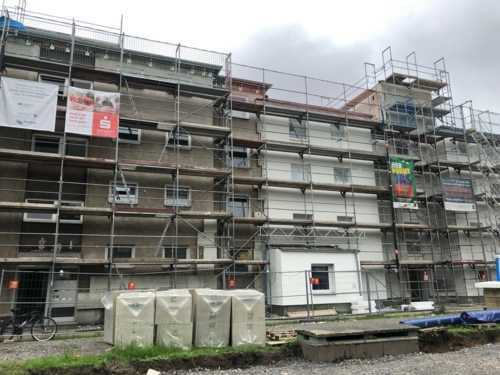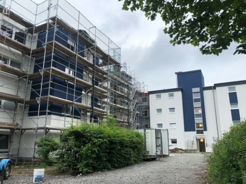 Im ersten Bauabschnitt der mit öffentlichen Fördermitteln (9 Mio. €) des Landes NRW vom spar+bau durchgeführten Modernisierung sind große Fortschritte zu erkennen: am Haus An der Mähre 6 ist die Fassadendämmung mit nachhaltiger Mineralwolle fertig gebaut, die Erneuerung von Fenstern und Balkonen ist abgeschlossen, die Dämmung von Dach und Keller sowie der Einbau des neuen Aufzuges sind erledigt usw.; momentan laufen die letzten Arbeiten an den Häusern An der Mähre 2 und 4 und dann ist der erste von vier Bauabschnitten so gut wie abgeschlossen. Ab September geht es dann mit dem zweiten Bauabschnitt (Sternbergstr. 68+70) weiter. Die hochwertige Gestaltung der Farben und Materialien findet bei Bewohnern und Partnern des Projektes großen Zuspruch und motiviert uns für den weiteren Projektablauf. Übrigens: weitere Informationen zum Modernisierungsvorhaben finden Sie auf unserer Homepage in der Online-Ausgabe unserer Kundenzeitung „INSIDE“.