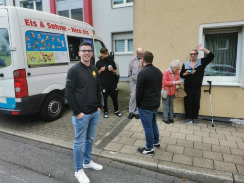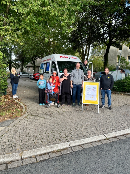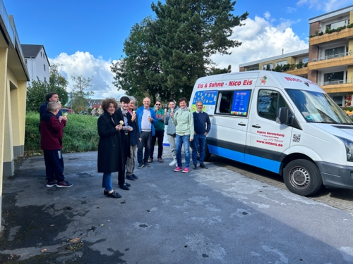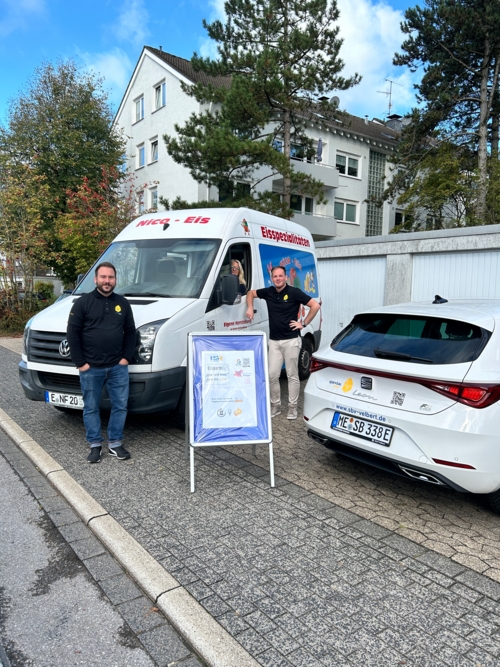 Am Samstag den 28.09.2024 waren wir in unserem Wohnungsbestand unterwegs und haben die Mitglieder, wie in der aktuellen Ausgabe der inside angekündigt, im Zuge unseres 125-jährigen Jubiläums als Dankeschön mit leckerem Eis in den Farben des spar+bau versorgt. Trotz des etwas kühleren Wetters konnten wir dabei in viele lächelnde Gesichter schauen und in den gemeinsamen Austausch mit Ihnen gehen. Am Ende des Tages war nach 18 geplanten Eisstopps bei unseren Mitgliedern noch immer etwas Eis über (für den ein oder anderen war es vielleicht dann doch zu kalt). Die Entscheidung - mit den Resten etwas Gutes zu tun - war schnell getroffen, so dass wir noch 2 außerordentliche Eisstopps bei der Polizei Velbert und den Kindern und Betreuern des Stiftung Mary Ward Kinder- und Jugendhilfezentrums eingelegt haben.